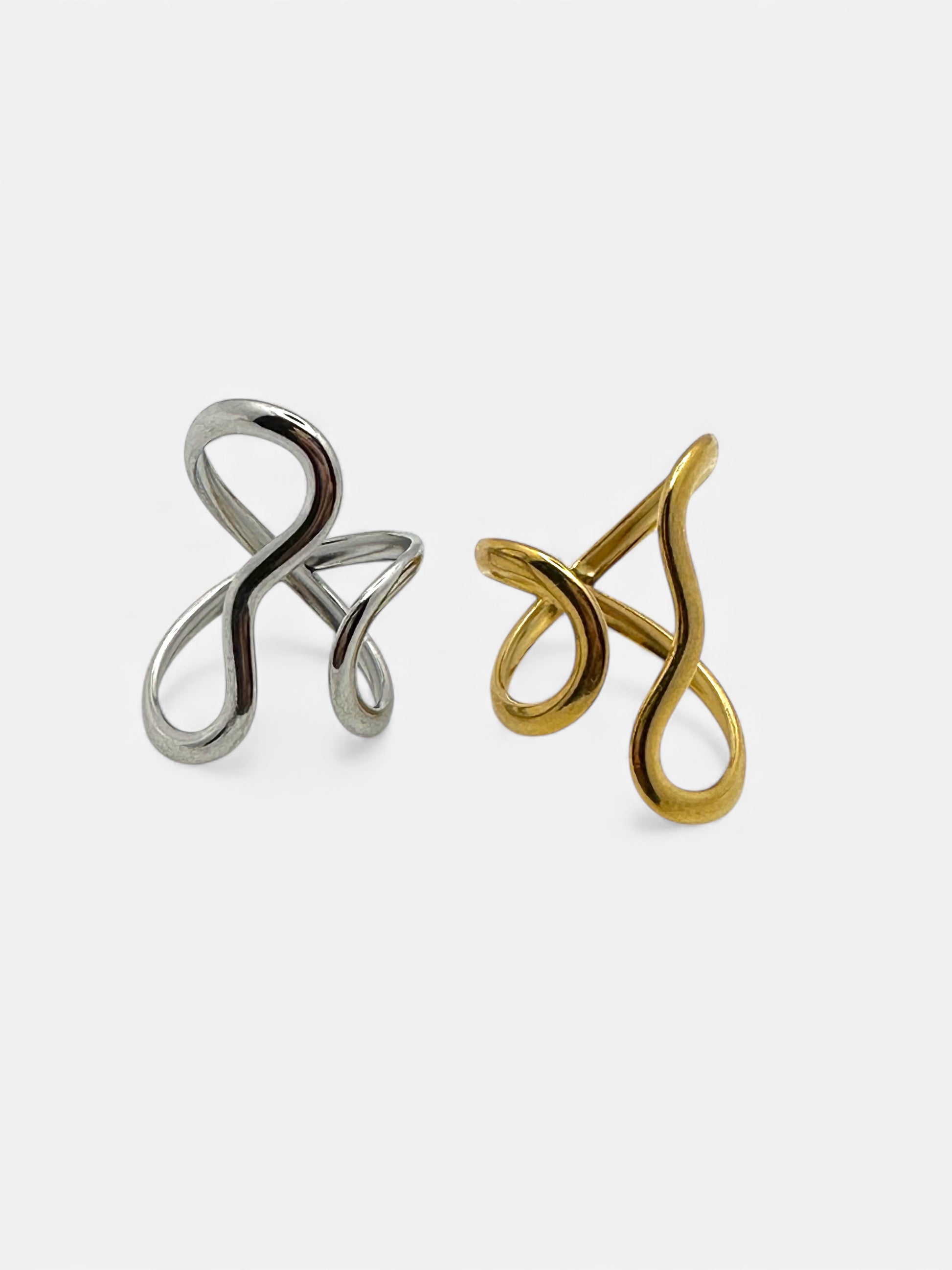 Anello dal design aperto e regolabile, caratterizzato da una linea sinuosa che si intreccia con naturale armonia.