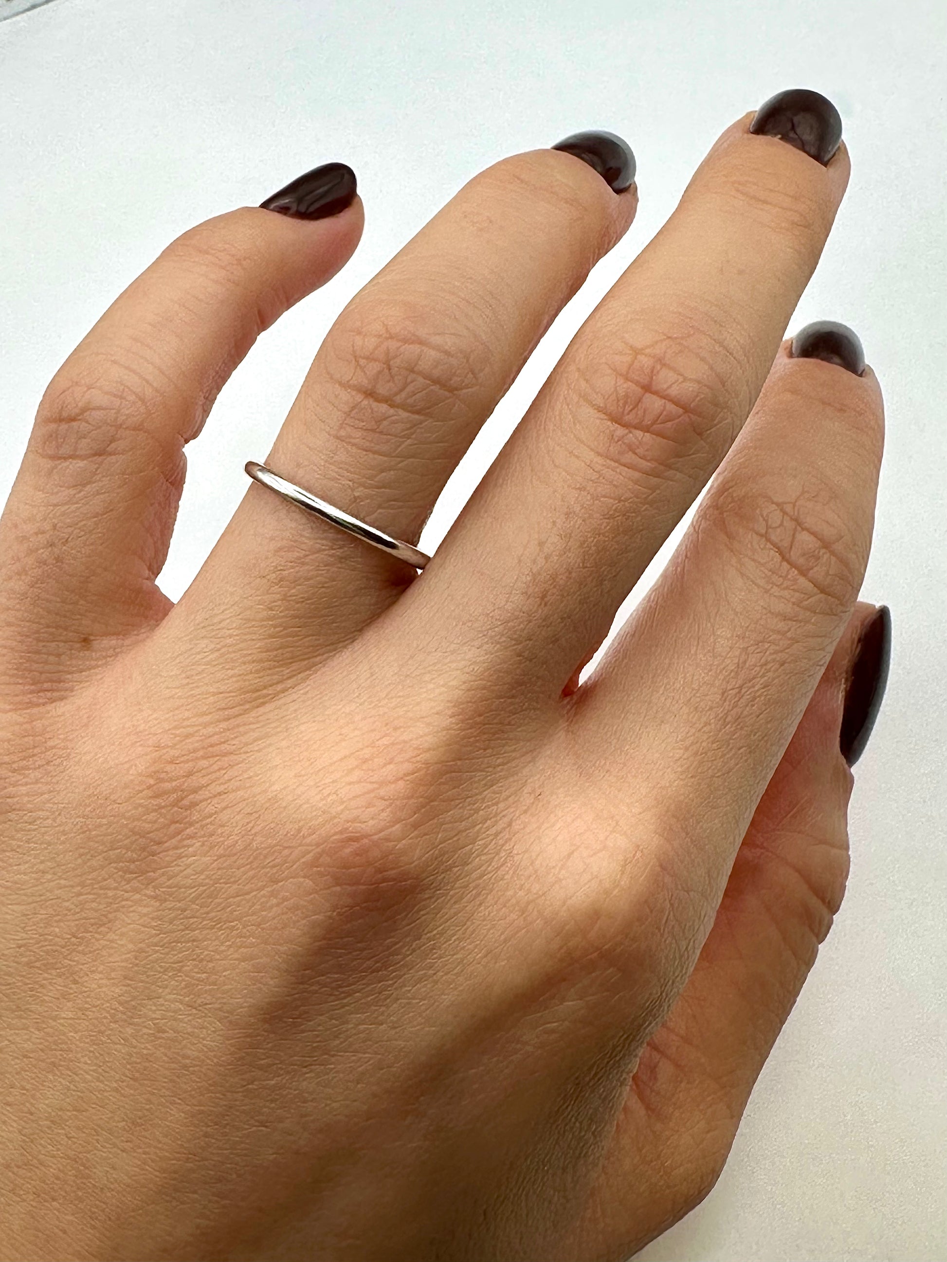 Fedina slim dal design minimale ed elegante, pensata per chi ama gioielli raffinati e discreti. La sua sottile fascia la rende ideale da indossare da sola come anello di fidanzamento, simbolo di amore e impegno, oppure abbinata ad altre fedine per creare un elegante effetto a strati sulle mani.