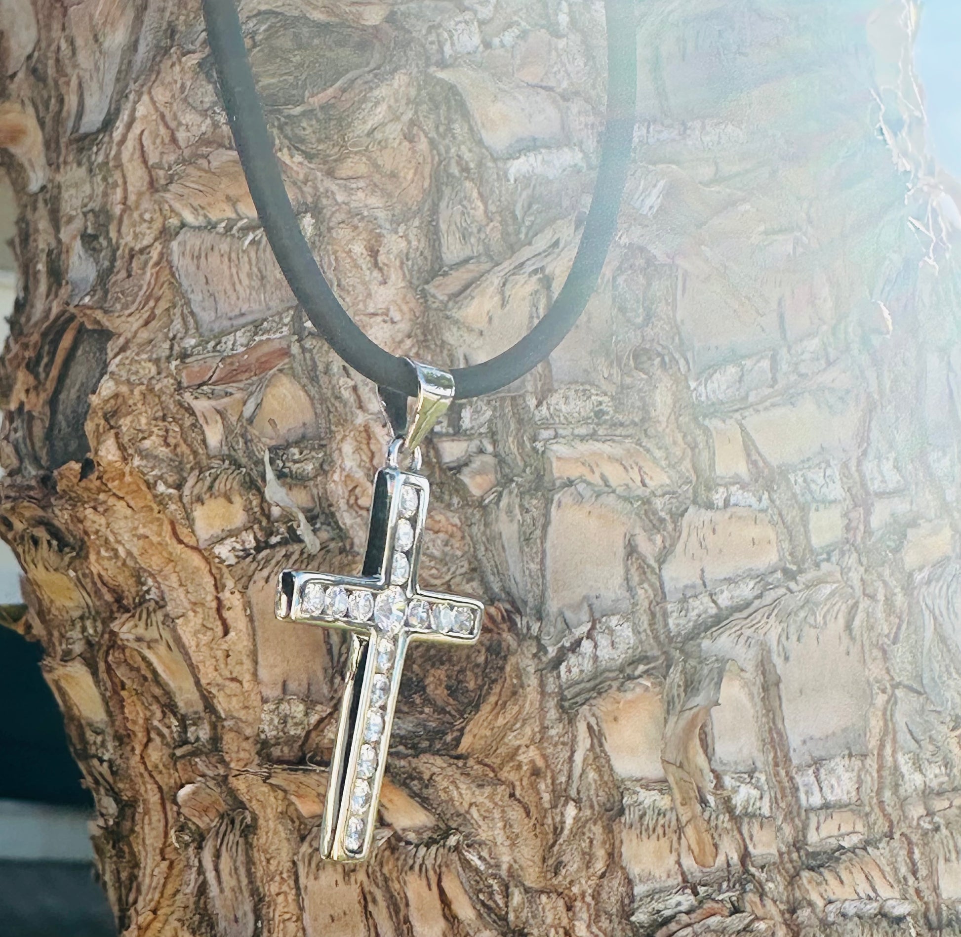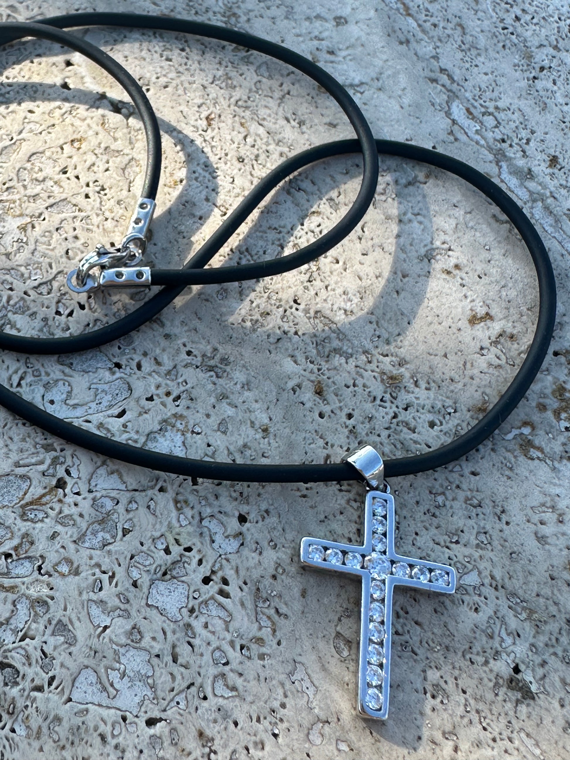 Collana con caucciù con chiusura argento 925 e Croce con zirconi