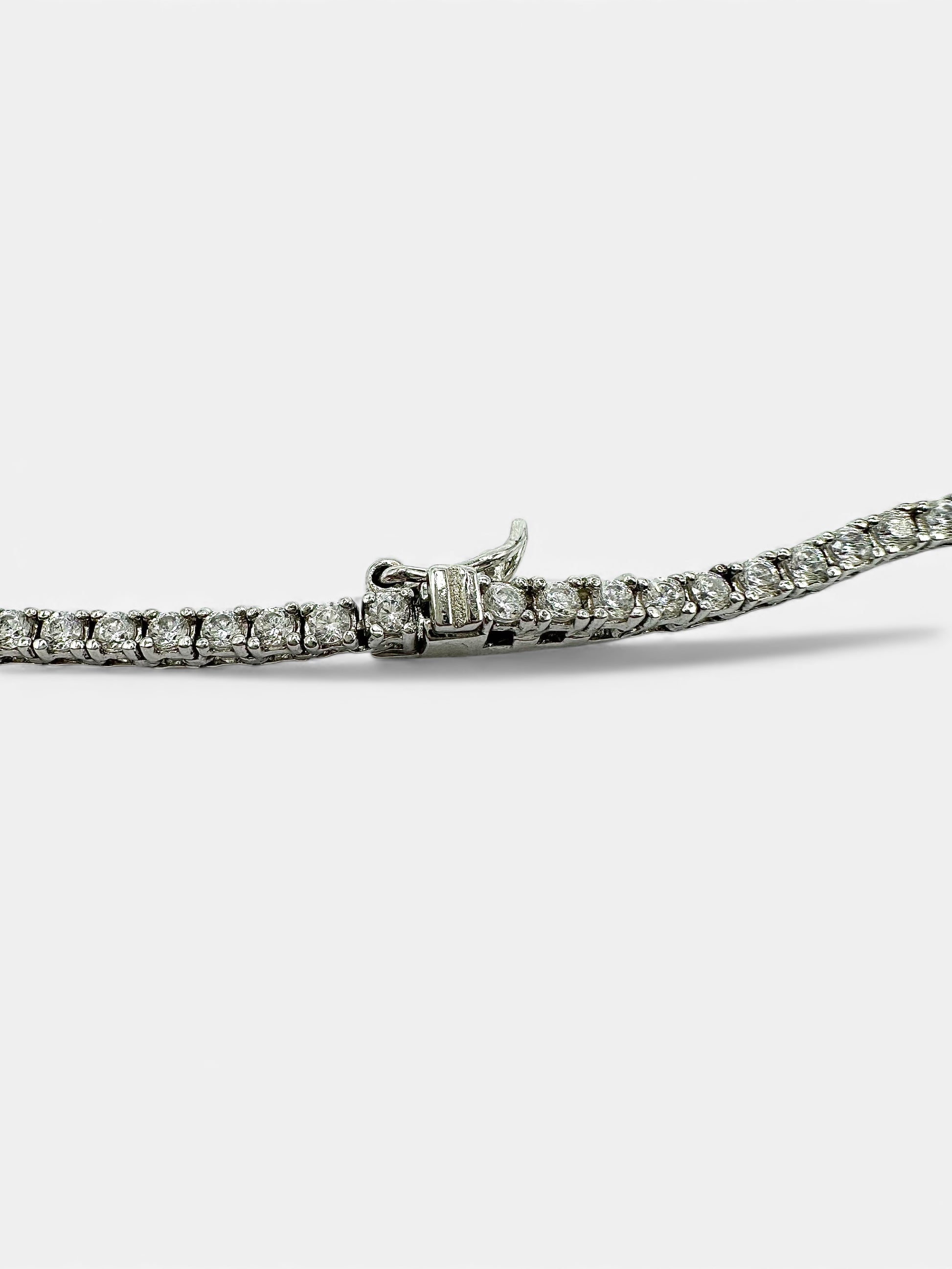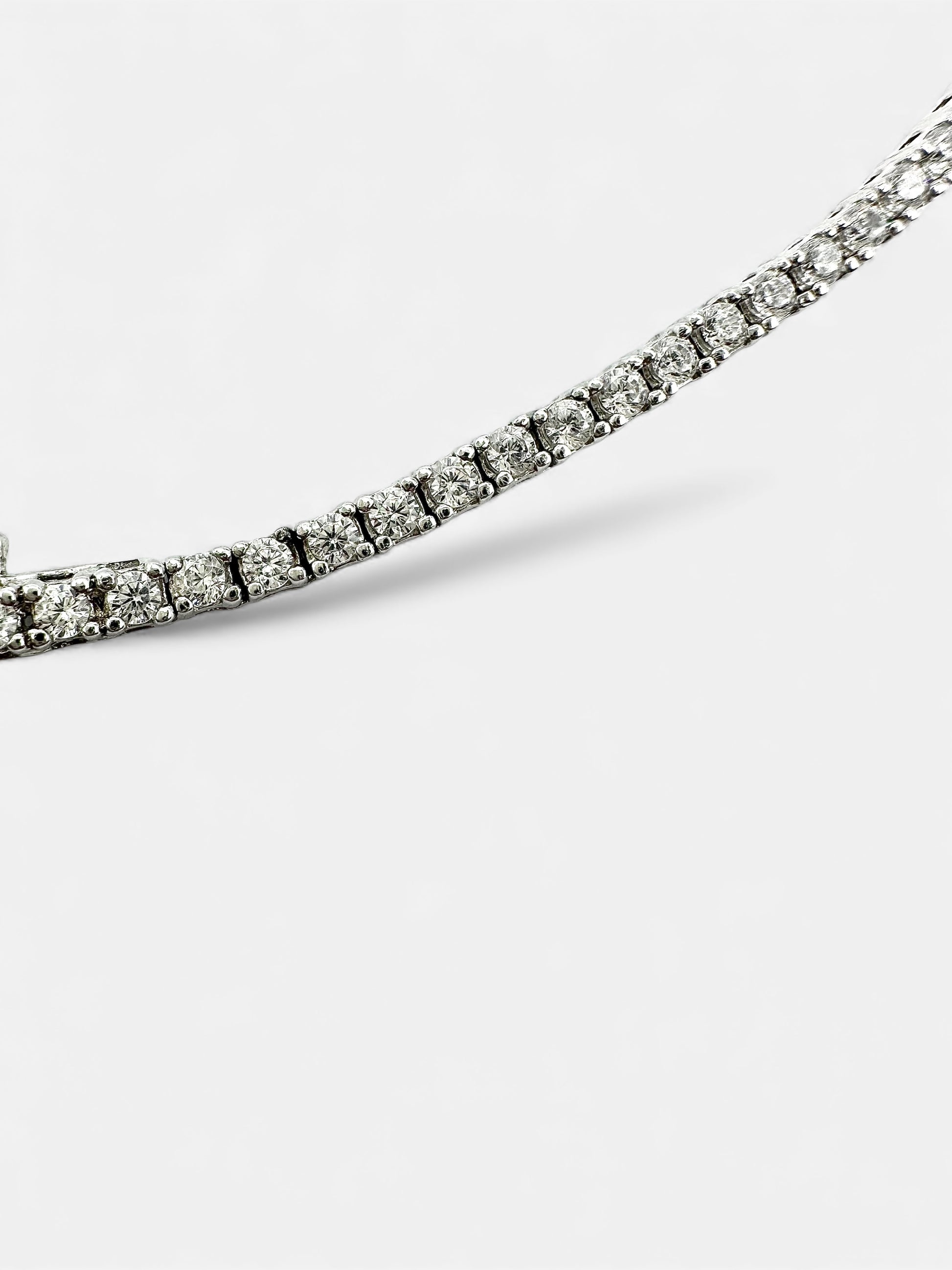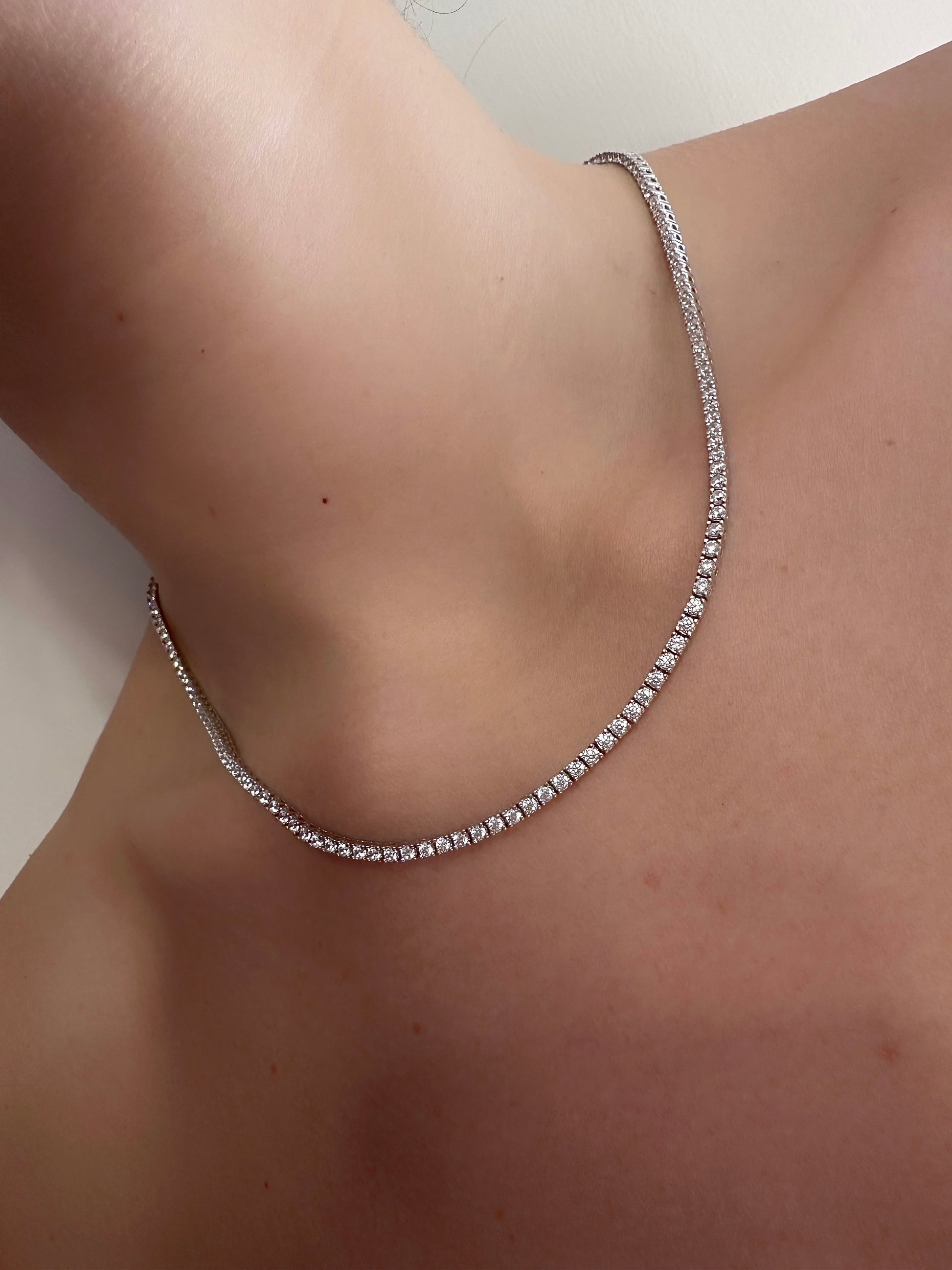 Collana Tennis: una cascata di luce continua che avvolge il collo con brillantezza impeccabile. Perfetta per elevare ogni outfit, dal quotidiano alle occasioni speciali. Un classico intramontabile che dona immediatamente eleganza e prestigio.