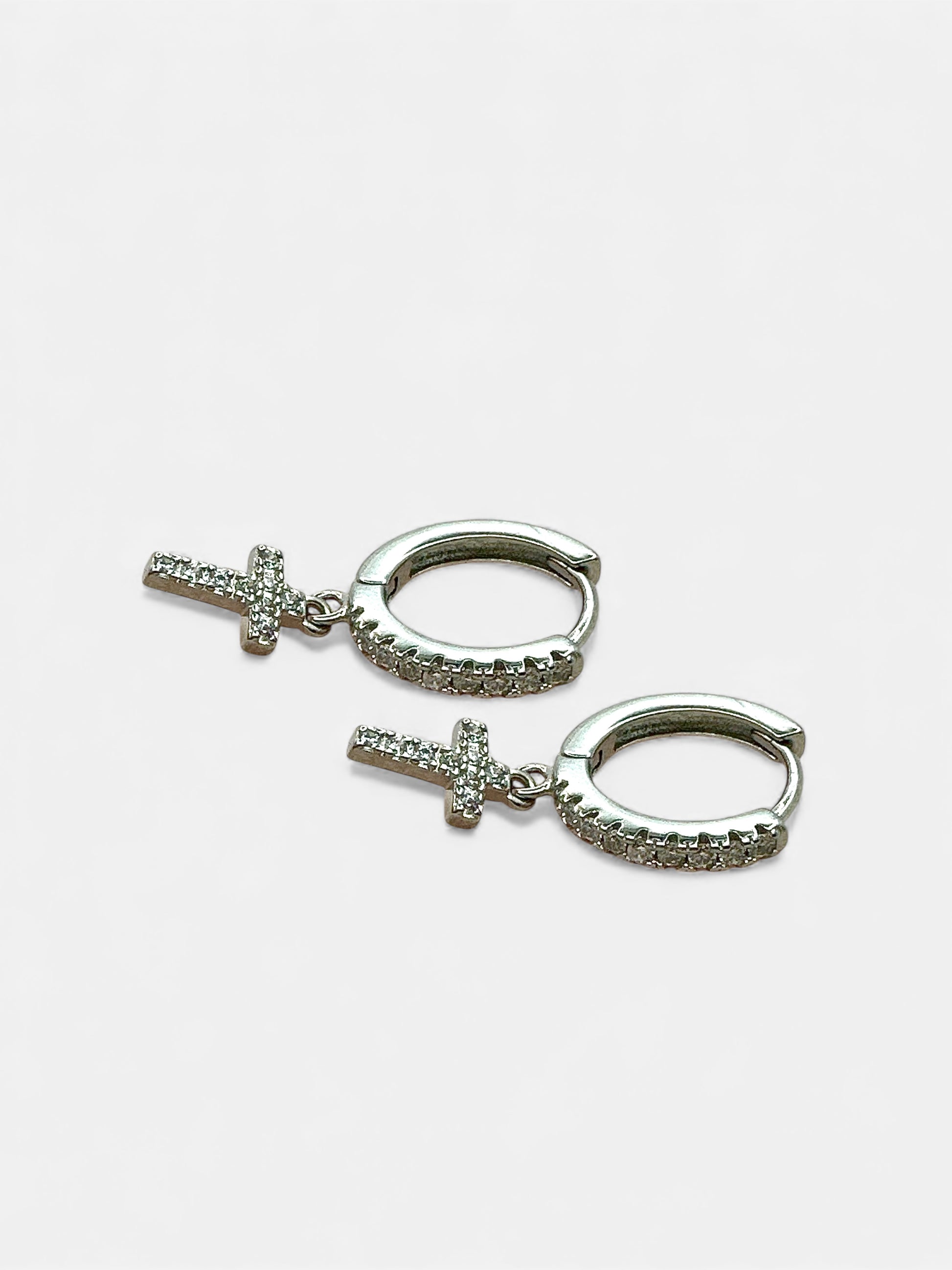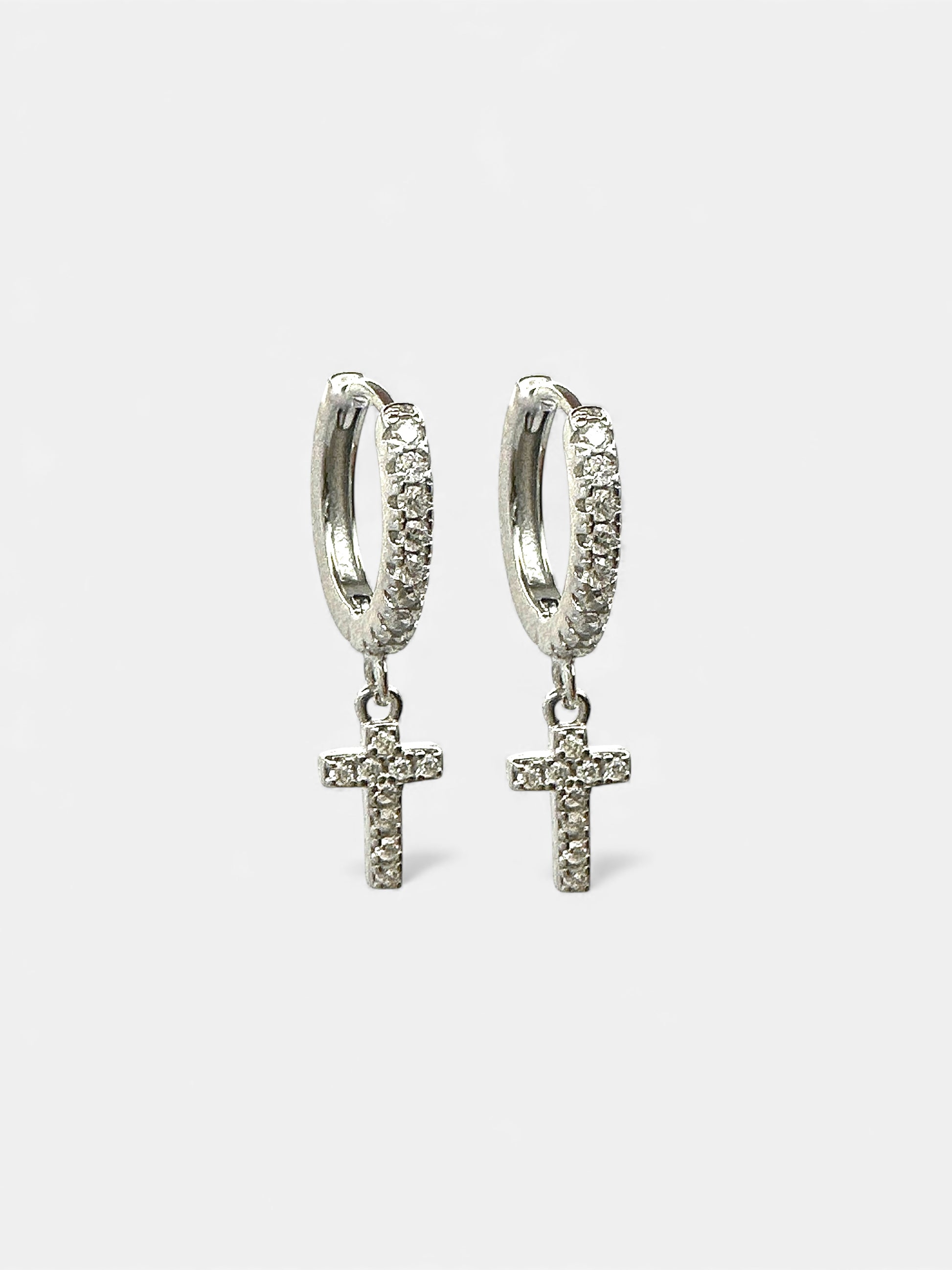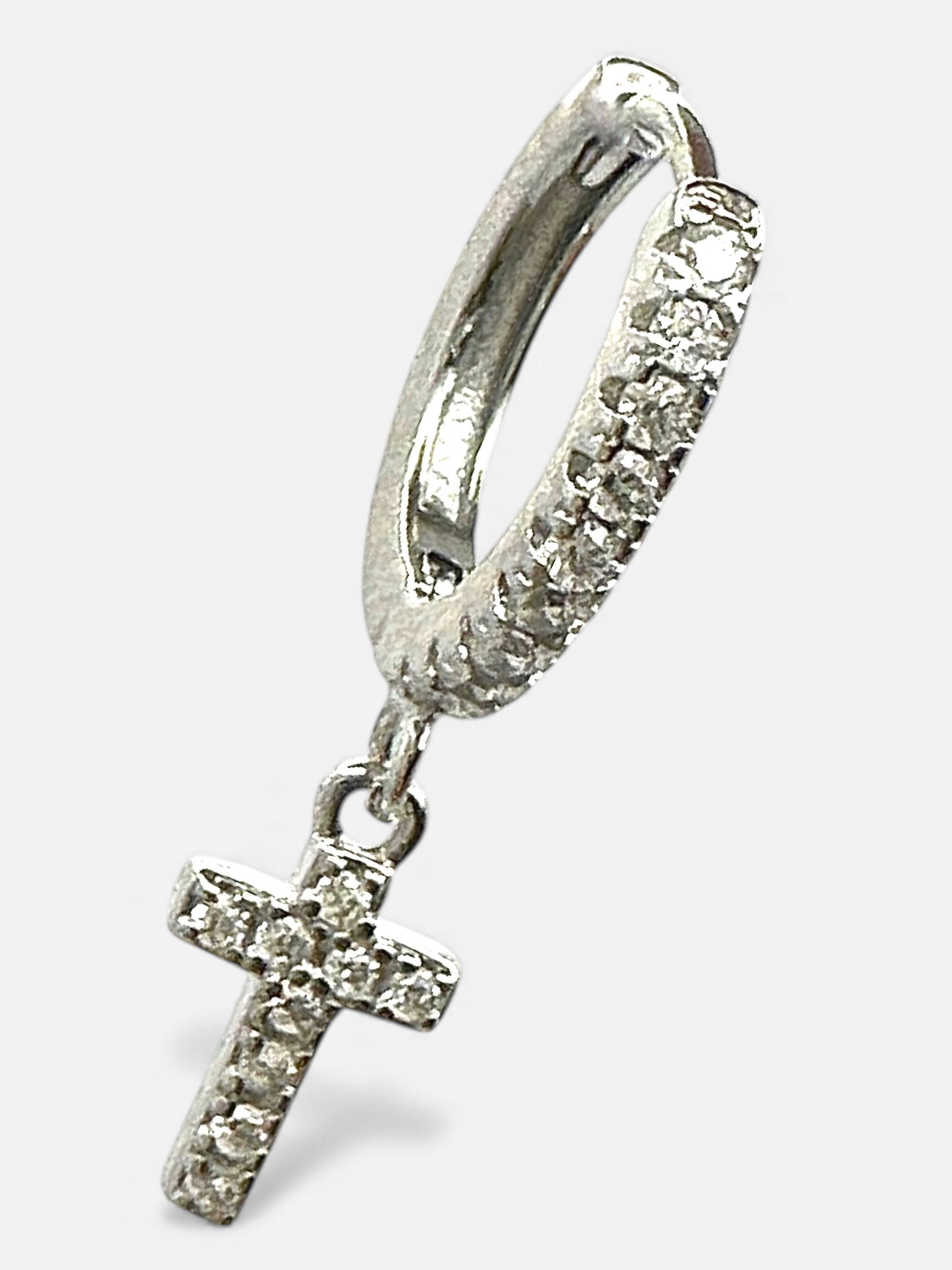 Un cerchietto raffinato che abbraccia il lobo con leggerezza e lascia scendere una croce luminosa, lavorata con cura e impreziosita da pavé di zirconi scintillanti. La sua silhouette essenziale incontra un’eleganza senza tempo, trasformando questo orecchino in un simbolo di luce, stile e femminilità.